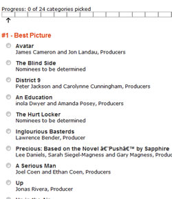 Academy Awards Pool Samples