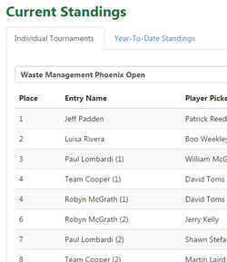 The following samples are just a few of the reports you'll see for your weekly Pick X golf pool.