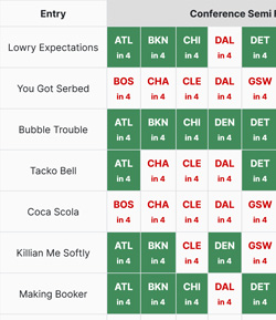 - For each series, they also pick how many games they think the series will go (4, 5, 6 or 7 games)